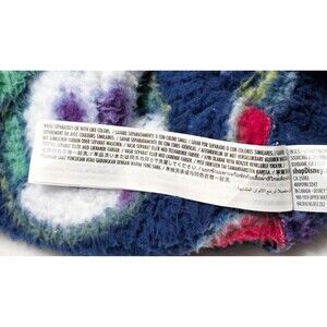 This soft sherpa top is dark blue in color and adorned all-over in colorful Mickey Mouse faces. It offers a green, ribbed, crew neckline, and green ribbed cuffs.