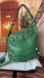 The bag is crafted from green leather, with a single rolled shoulder strap and a zip-top closure.