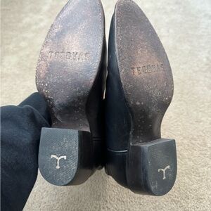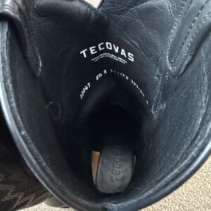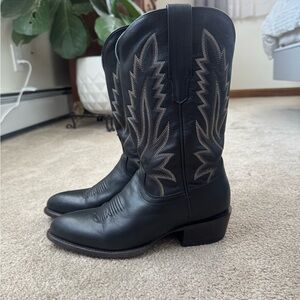 Classic black leather boots with intricate stitching. Perfect for a rugged yet stylish look. Durable and comfortable for everyday wear.