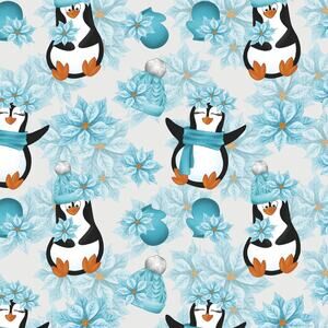 Ring in the holidays with this blue penguin and floral patterned ruffle two-piece set with a long sleeve top and bell bottoms.