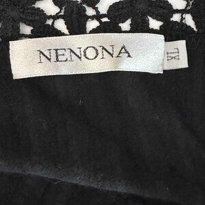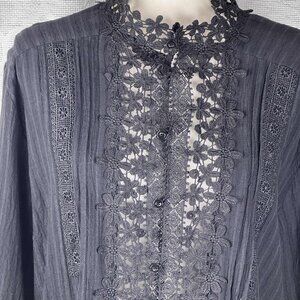 Nenona Black Lace Trim Blouse – Sheer Floral Cutout, Pintuck Detail, Size XL