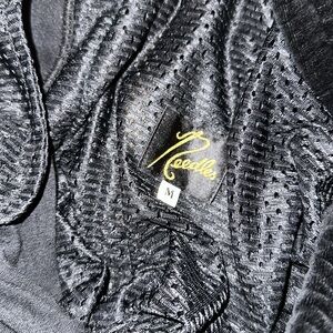 Stylish black track pants featuring teal stripes and a butterfly logo.