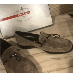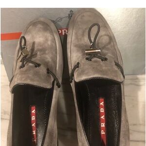 Prada Toggle Charcoal Suede Loafers Sz 38