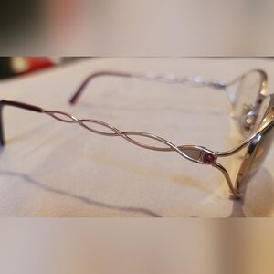 VINTAGE SALVATORE FERRAGAMO GOLDEN METAL EYEGLASSES FRAMES PINK DIAMOND W/ Case