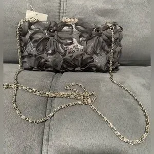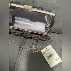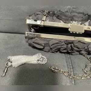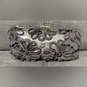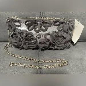 Versona Gray/Silver Floral Sequin Clutch Bag Removable Straps NWT