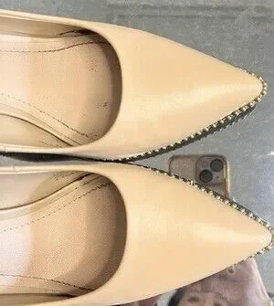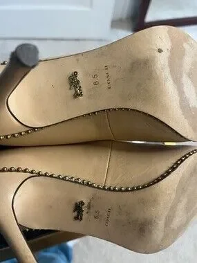 Coach Waverly High Heel Pumps. Nude/beige . Size 6.5. Very Good Condition Beautiful pumps worth stud accents on bottom. Preown in very good condition. Please see photo for signs of wear.
