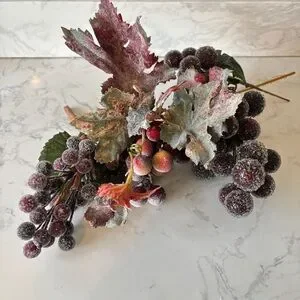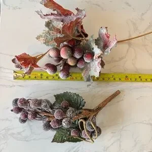 Beautiful vintage decorative fruit. This is a set of three grape vines in shades of purple. Longest one is approximately 8 inches in length. Beading and sugaring is very pretty. No scent. First photo show with the set of three together and the following three photos shows each piece separately . Will be shipped very carefully. Smoke free pet free home.