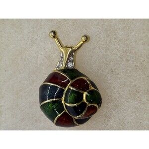 Vintage Snail, Womens Brooch, Enamel, Cloisonne, Rhinestones, Gold Tone Spring