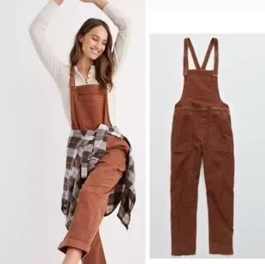 Aerie werk and play overalls. Adjustable double D ring straps. Multiple pockets. Raw frayed hem. Soft twill corduroy stretchy fabric.