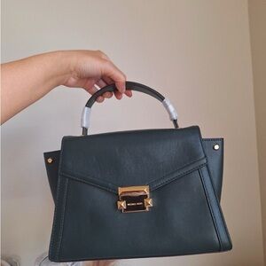 Chic Michael Kors satchel in navy Features elegant 18K gold hardware. Perfect for any occasion.Whitney Admiral. Brand new with tags clean smoke free home