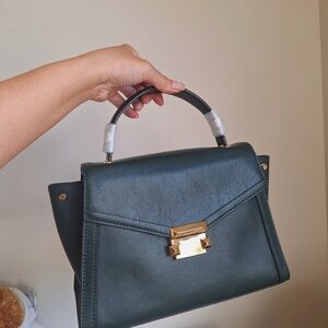 Michael Kors Navy Satchel with Gold Accents NWT $298 Leather Med Whitney