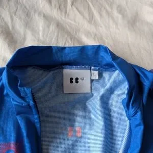 Never worn outside, electric blue jersey. Size large, but runs small. Race fit