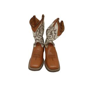 Laredo Men's 10" Cowboy Square Toe Leather Western Boots White/Brown Size 9D
