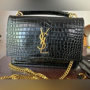 YSL Sunset Black Crocodile Embossed Leather 2,020$