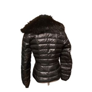 moda international Coat S Jacket Quilted Black Full Zip Moto Fur Collared