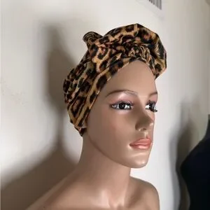 This is a leopard turban style hat made by Ruby Lea. She doesn’t make this style anymore. Size small. New without tags.