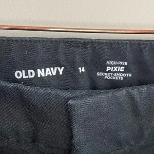 These Old Navy Pixie pants in a classic black offer a sleek and modern fit, perfect for both casual and business casual settings. Crafted from a smooth stretchy fabric, they provide comfort and style for any occasion. The rise measures about 11β and the inseam about 28β