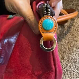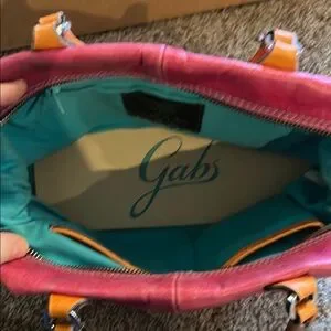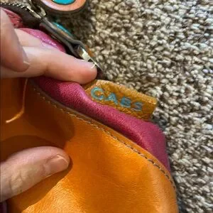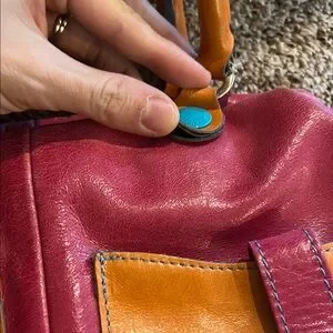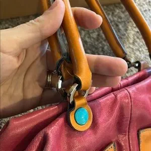 Vibrant leather handbag featuring a stylish combination of pink and orange hues. Perfect for adding a pop of color to any outfit.