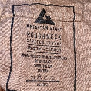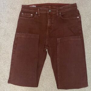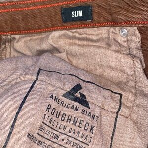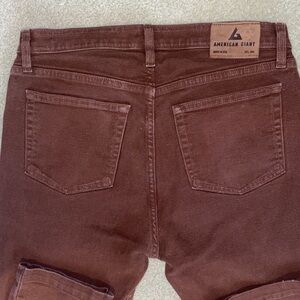 American Giant Mahogany Men’s Roughneck Slim Leg Stretch Canvas Jeans 34 x 30