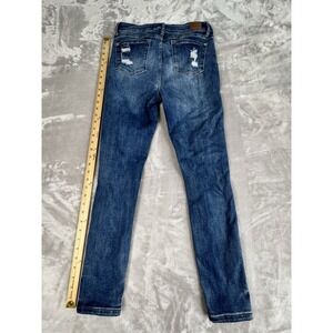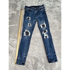 Judy Blue Size 7/28 Skinny Fit Distressed Jeans Navy Stripe Patches Med Wash
