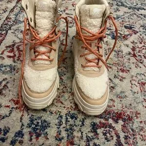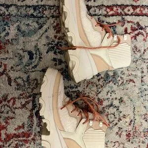 Sorel Cream Lace-Up Boots chunky heel size 9