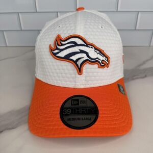 Denver Broncos Hat Cap Fitted Men Medium-Large White Orange NFL New Era 39Thirty