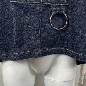 FLORA ANIMALIA DENIM CRISS CROSS TOP IN A MARKED SIZE 1- FITS A SMALL. TOP FEATURES A DENIM BODY, WITH A CRISS CROSS BACK WITH A POCKET AT FRONT AT D-RING FEATURE. WORN ONCE TO AN EVENT, PRISTINE CONDITION.