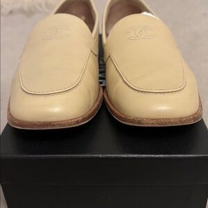 Gorgeous CHANEL loafers in a chic beige tone. Ideal for a touch of elegance! These are vintage and preloved but in very good condition. Please feel free to review all photos and ask any questions prior to purchasing. The shoes will arrive in the original Chanel box.