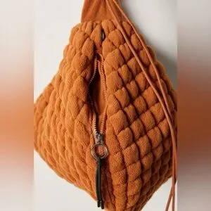 NO LONGER AVAILABLE!! Super cute slouchy tote bag in fleece material for a cozy fall/winter look. Drawstring can be pulled to ‘pucker’ the strap for a ruffled look or let out to make a longer strap for crossbody