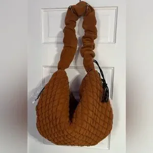 Add the perfect touch of shape and dimension to every style with this stunning bag featured in a slouchy, carry-all style and defined quilted quilted fleece fabrication with scrunched shoulder strap for a forever cool finish.