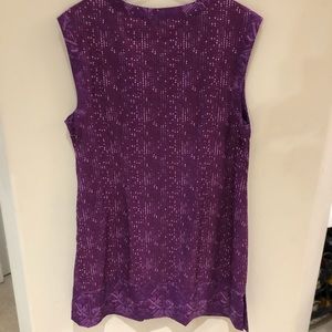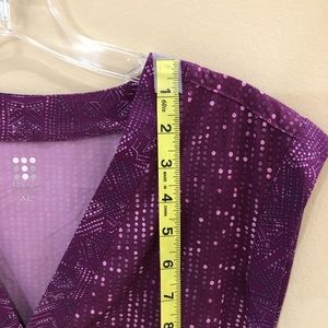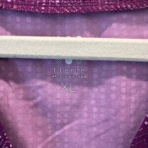 Gently worn, washed cold, unscented and hung to dry. Excellent preowned condition. Perfect, no signs of wear at all. Title Nine Nimblene dress. Size extra large XL. V neck sleeveless. Lightweight quick drying poly spandex blend. UPF 50+. It has one zipper hip pocket! Pretty purple plum pink dot dots print. Pls see pics for approx measurements.
