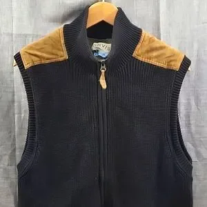 Orvis Mechanic's Foul-weather Vest Ribbed Knit Zip-Up Black SZ M