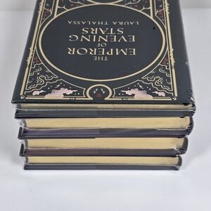 Beautiful book set featuring 'The Emperor of Evening Stars' and more. Elegant covers with intricate designs in black, gold, and red.