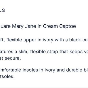 Elegant Mary Jane flats with a cream body and black toe. Comfortable and stylish for everyday wear. New but no box.