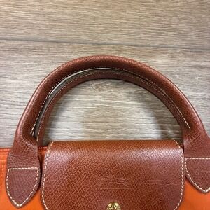 Longchamp Le Pliage Large Travel Weekender Tote Orange Leather Fair Condition