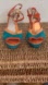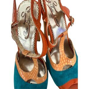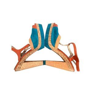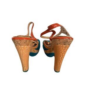 Poetic License London Orange Teal Peep Toe T-Strap Summer Fling Heels 8