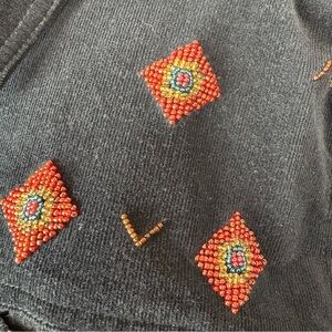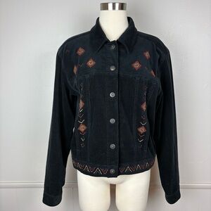 Carole Little Sport Azteca Corduroy Jacket Size 14 Black Beaded Native American