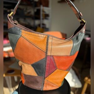Hard to find, especially in such great condition. This limited edition collector’s bag is made from sumptuous and supple leather in rich patchwork tones of Black, Mahogany, British Tan, Rust, Bottle Green, Burgundy and Putty, beautifully stitched together with top stitching that makes each section pop. Thick, chunky antique brass hardware. Original Collector’s Edition Hangtag and braided leather shoulder strap. Lined in silky rich brown fabric with slip pockets and zippered pocket.