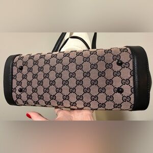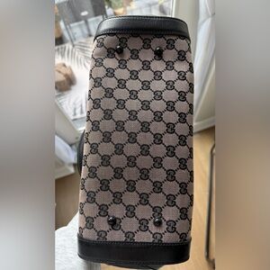 Gucci Bamboo Bullet Monogram Bag – Black Leather Trim, Lock Closure