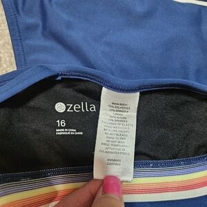 Zella 2 piece swimsuit GIRLS SIZE 16 BLUE W STRIPES