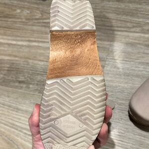Step into comfort and style with these elegant gray leather clogs. Perfect for any occasion. In great condition. Tiny scuff on right clog.