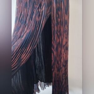 100% viscose. Made in India. Dry clean only. Fully lined. Front leg slit. Lightweight pleated chiffon fabric. ROCS-WD139. RS-AINE-1700. Best described in three words: sophisticated, luxurious and glamorous, Rococo Sand focuses on creating a style of women who cant get enough of the finer things. With an array of embroidered peasant tops, boldly printed maxi dresses, and tropical-inspired tanks, each Rococo Sand piece looks like a Grecian Island vacationers dream.