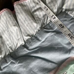 I want to be transparent and point out that there are a few stains on the quilt. Please review photos carefully. Despite these imperfections, it remains a charming piece, perfect for adding a touch of vintage charm to a nursery or as a decorative item. Don't miss out!