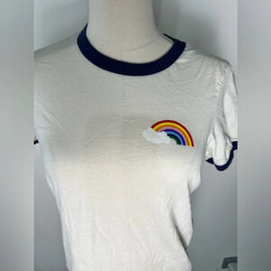 Ban.do Womens Ringer Endless Summer Rainbow T-Shirt 100% Cotton Size Small