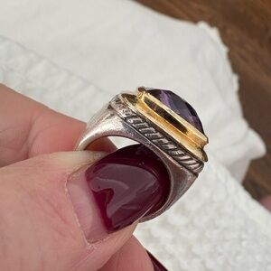 David Yurman Gold & Sterling Silver Ring with Amethyst Gemstone