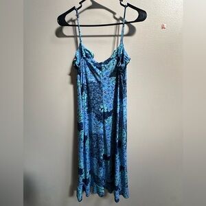 Vintage 90s/Y2K La Belle Blue Floral Ruffle/Lettuce Hem Sundress Women’s M USA