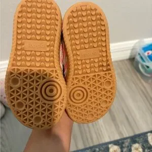 Pink and white toddler Sambas! They’re adorable. I get them in every size for my daughter.