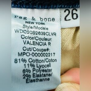 Rag & Bone Valencia Release Nina High Rise Ankle Skinny Jeans Size 26