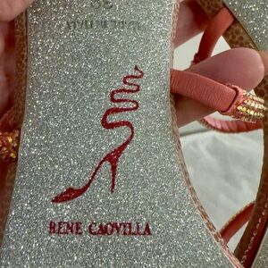 Rene Caovilla Pink and Gold Spiral Heels