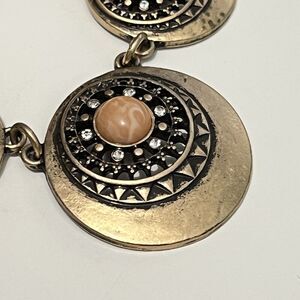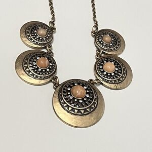 VTG Bronze Pink Coral Gem Art Deco Heavy Disc Chain Necklace 16-20”